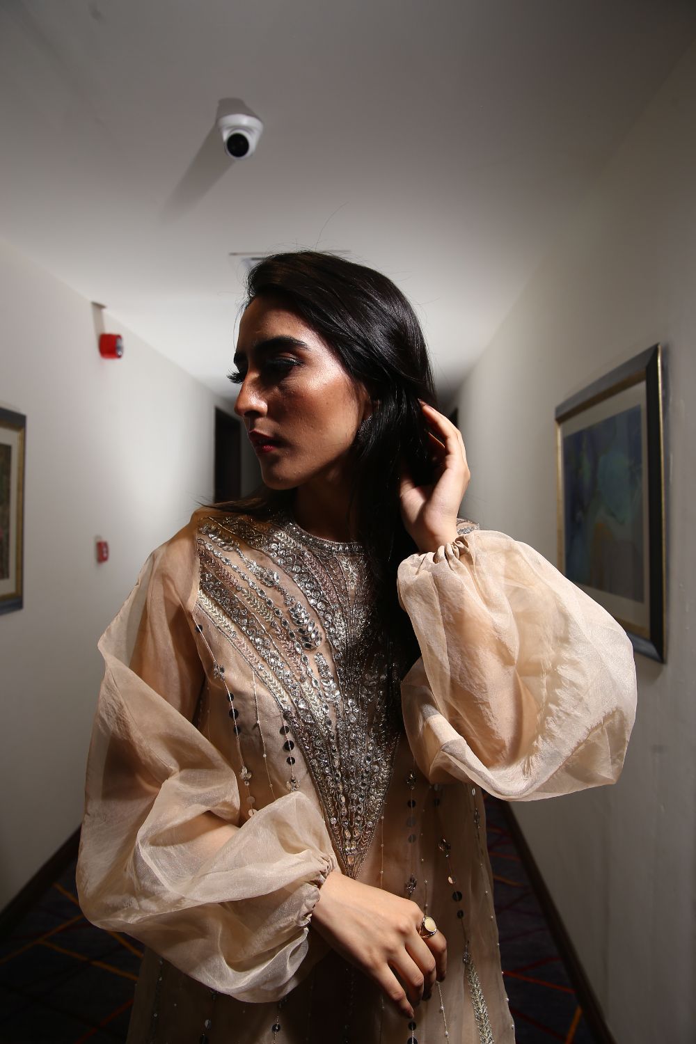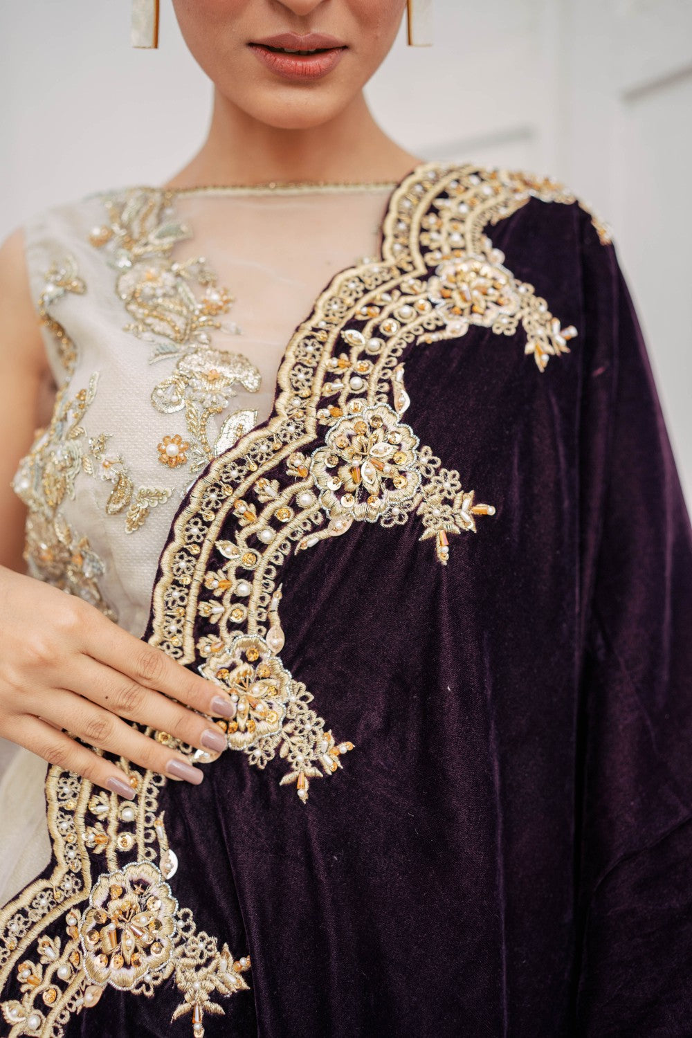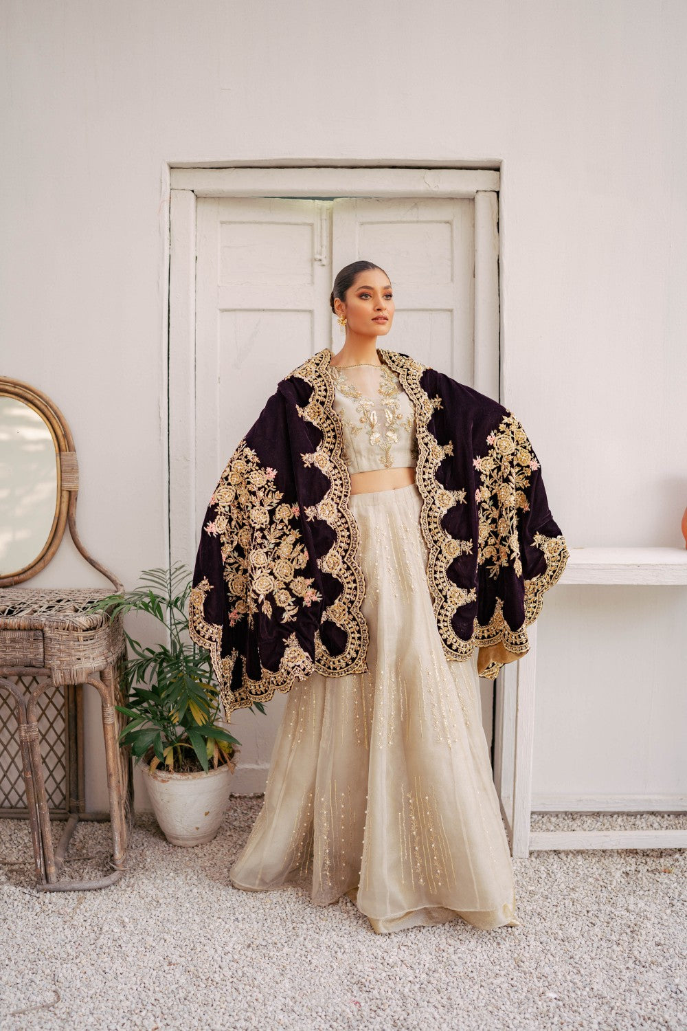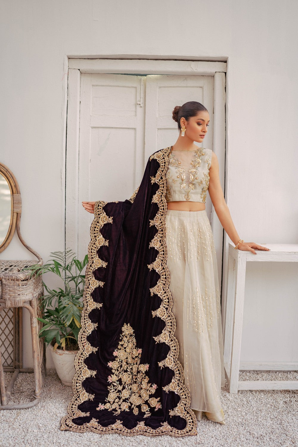 Step into elegance with our Rosé Garden Formal Ensemble, a timeless blend of pastel grace and exquisite embellishment adorned with hand-embellished floral motifs, zari work, and delicate sequin detailing.