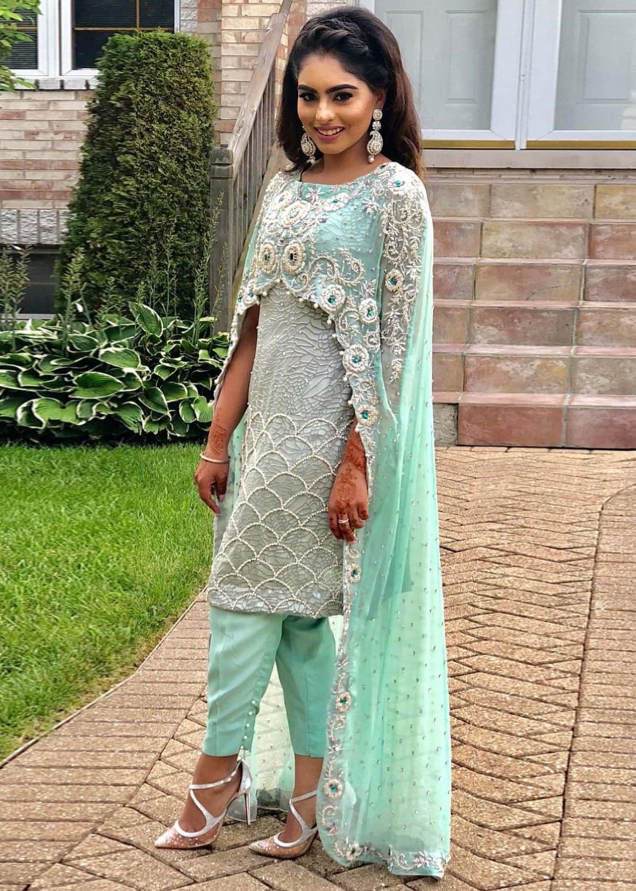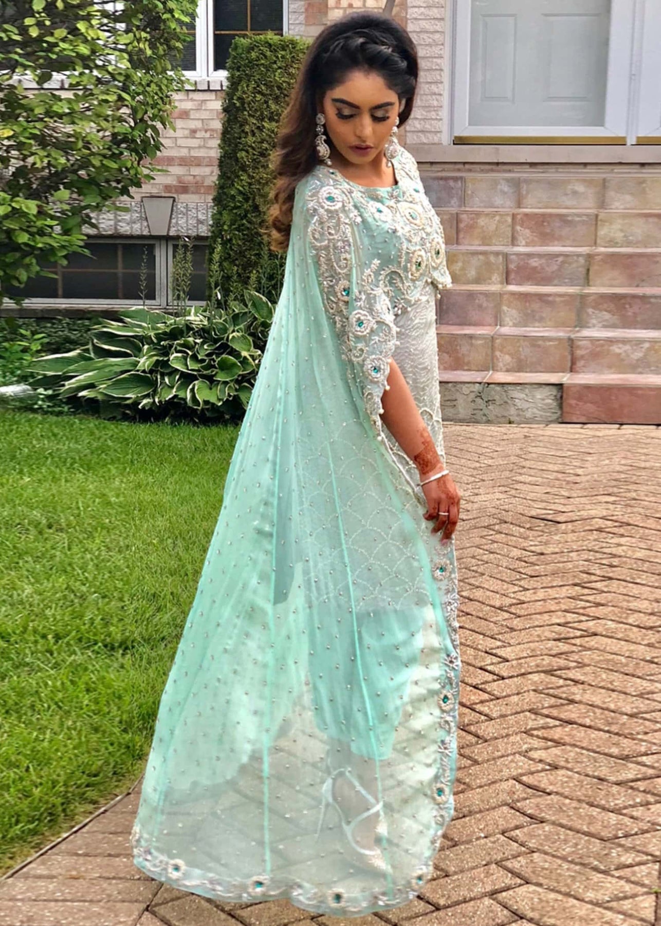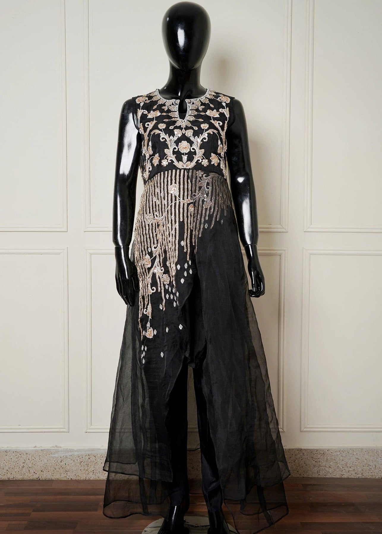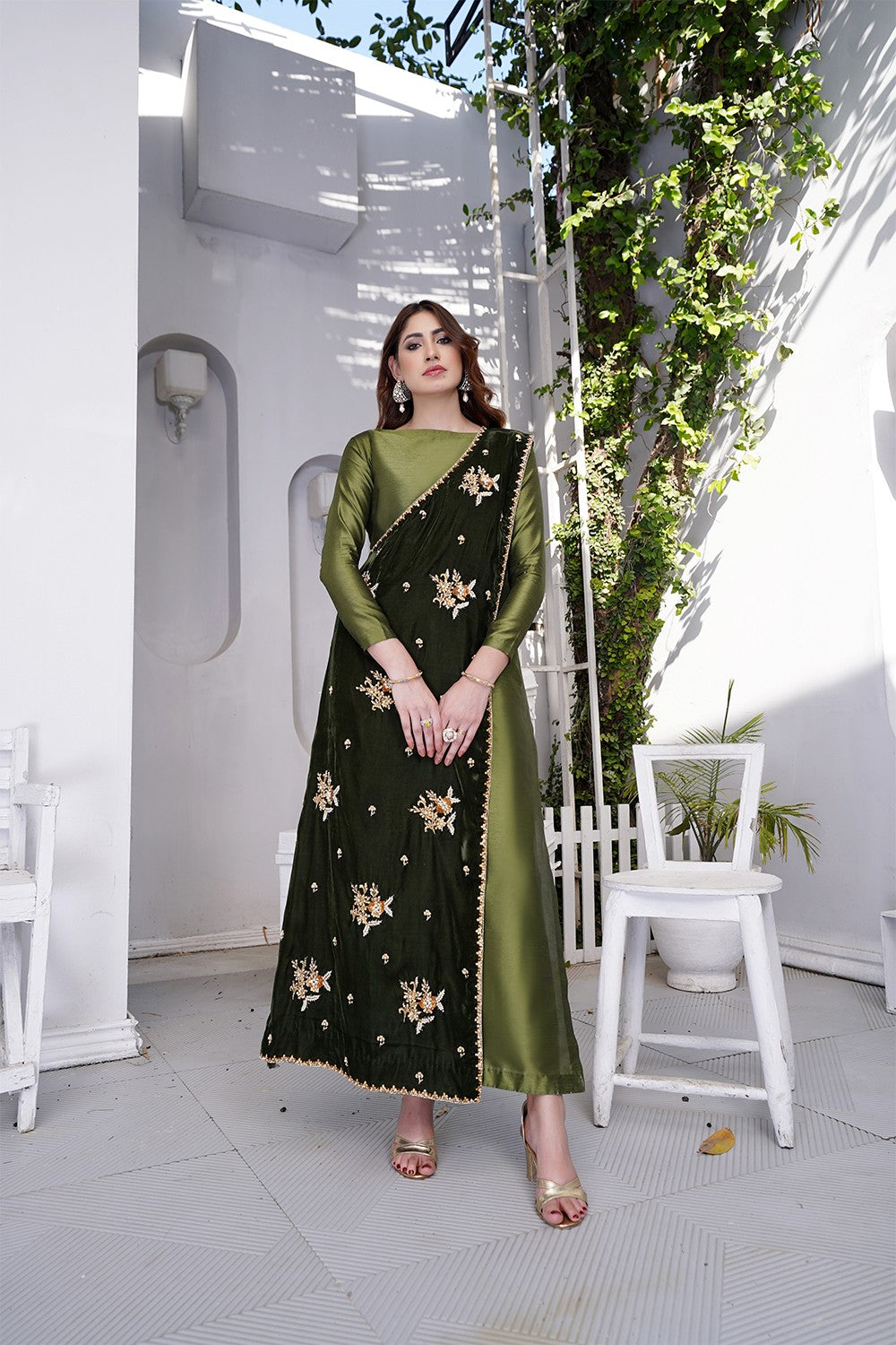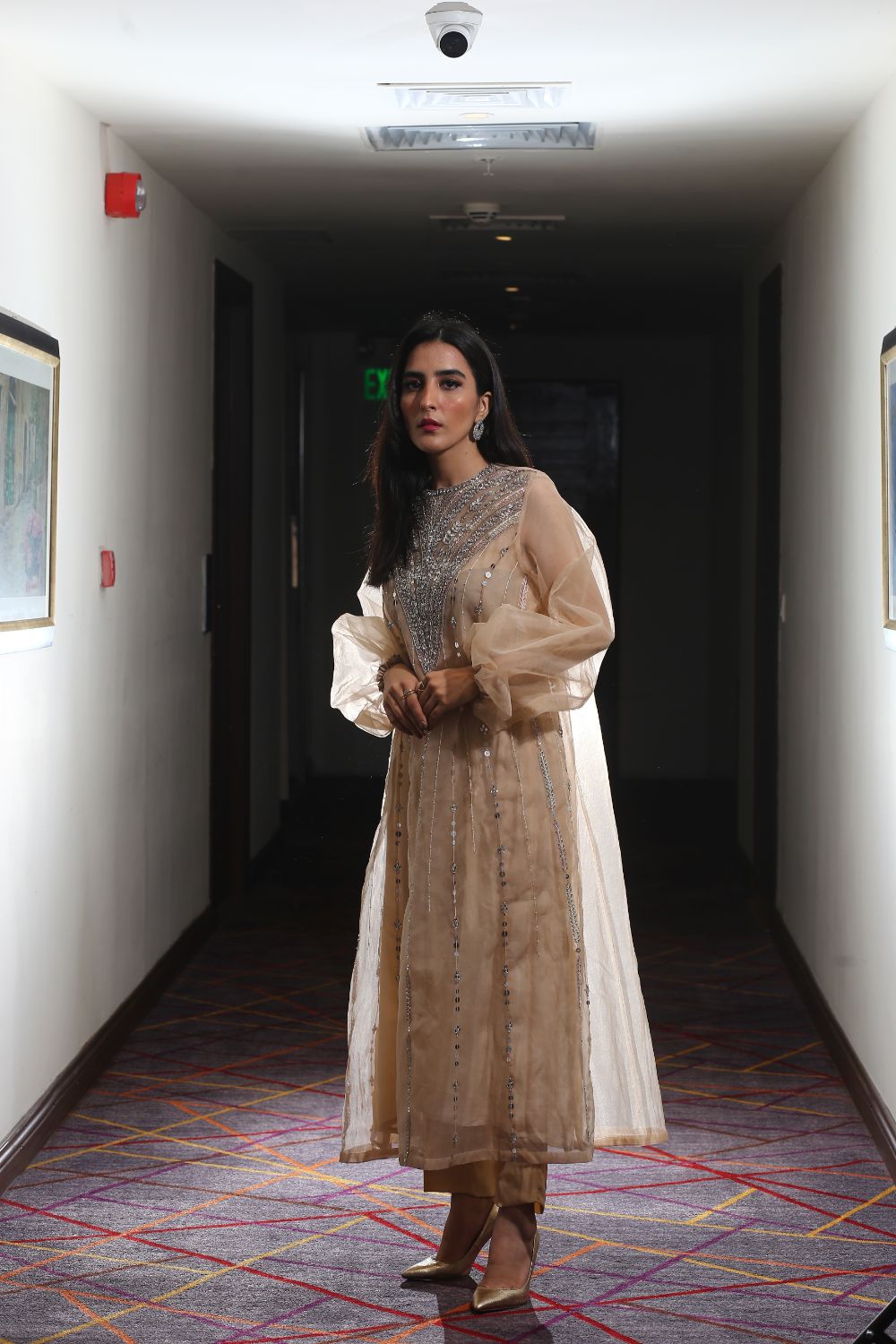 Step into elegance with our Rosé Garden Formal Ensemble, a timeless blend of pastel grace and exquisite embellishment adorned with hand-embellished floral motifs, zari work, and delicate sequin detailing.