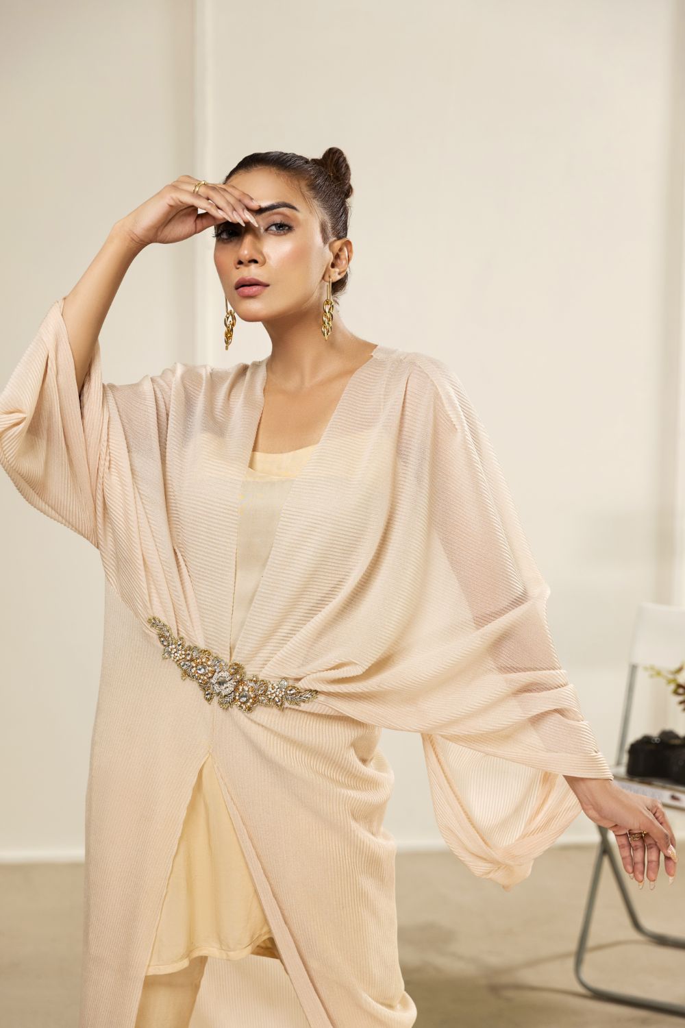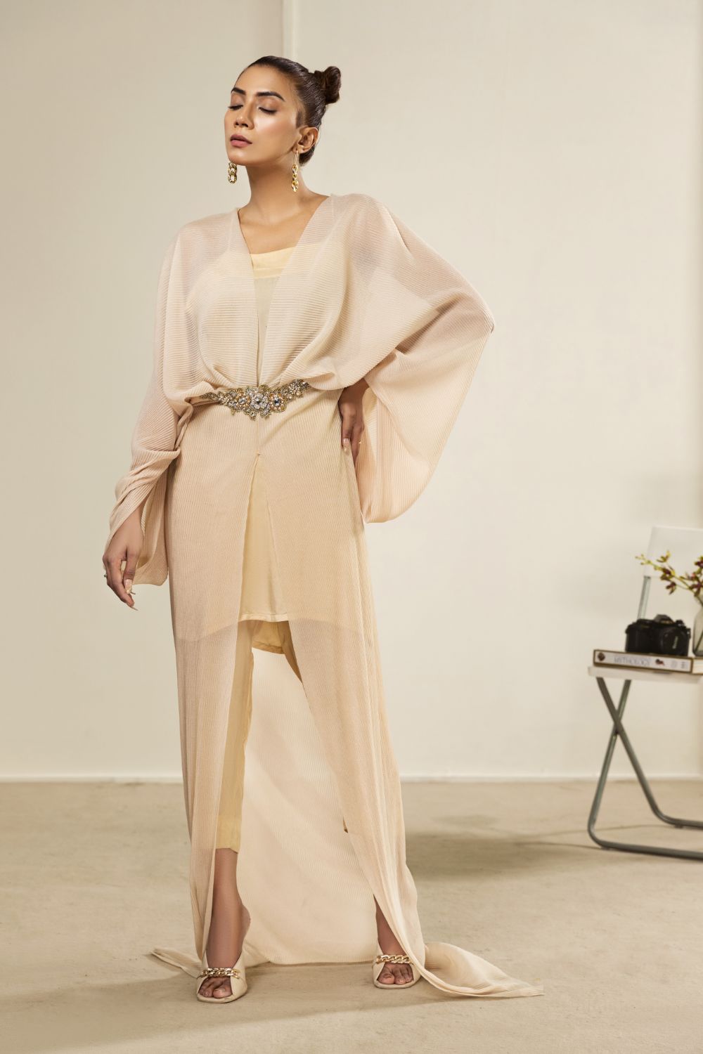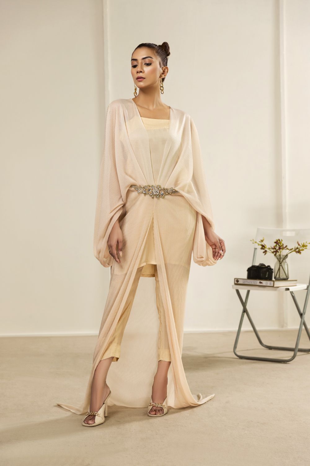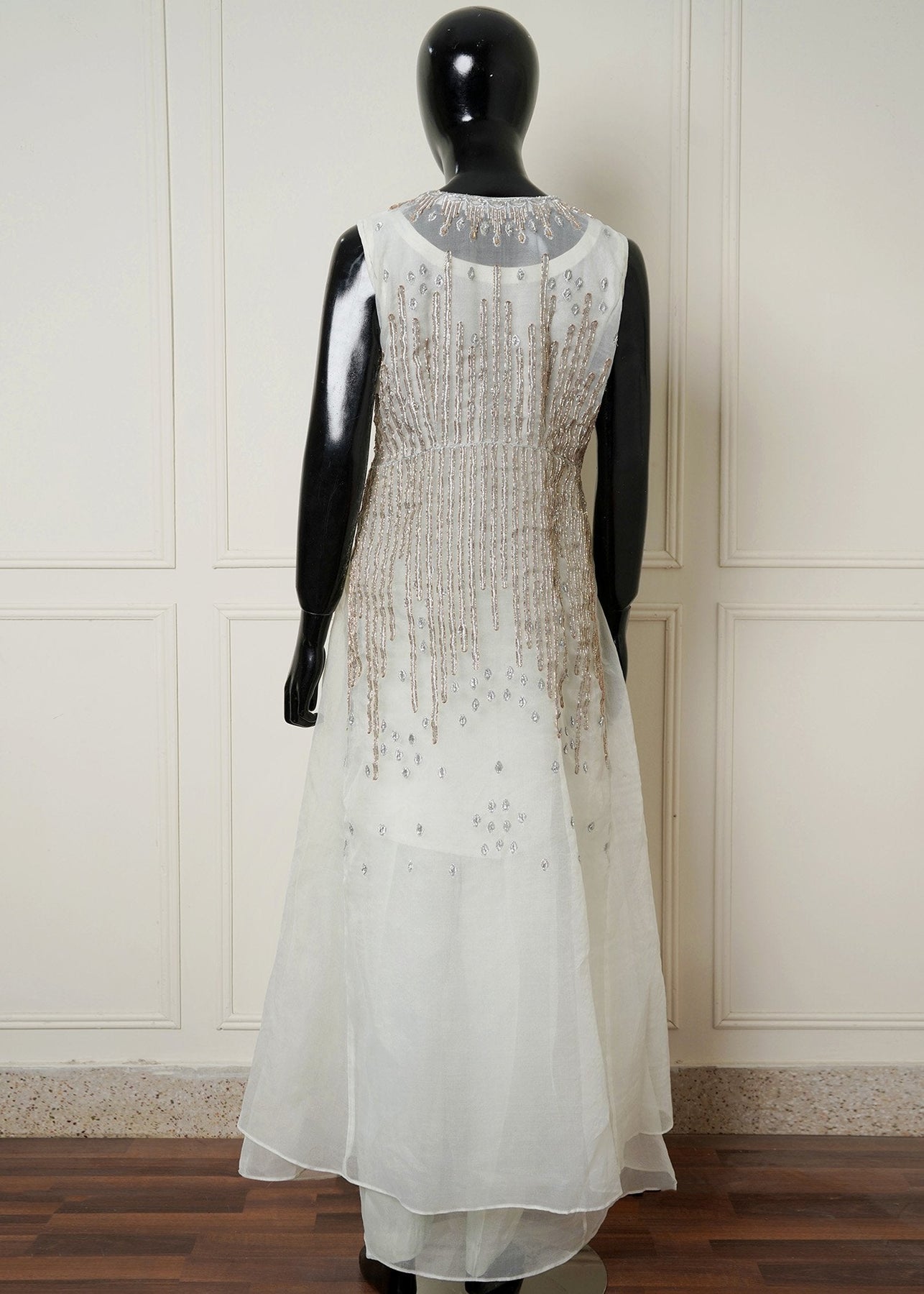 Step into elegance with our Rosé Garden Formal Ensemble, a timeless blend of pastel grace and exquisite embellishment adorned with hand-embellished floral motifs, zari work, and delicate sequin detailing.