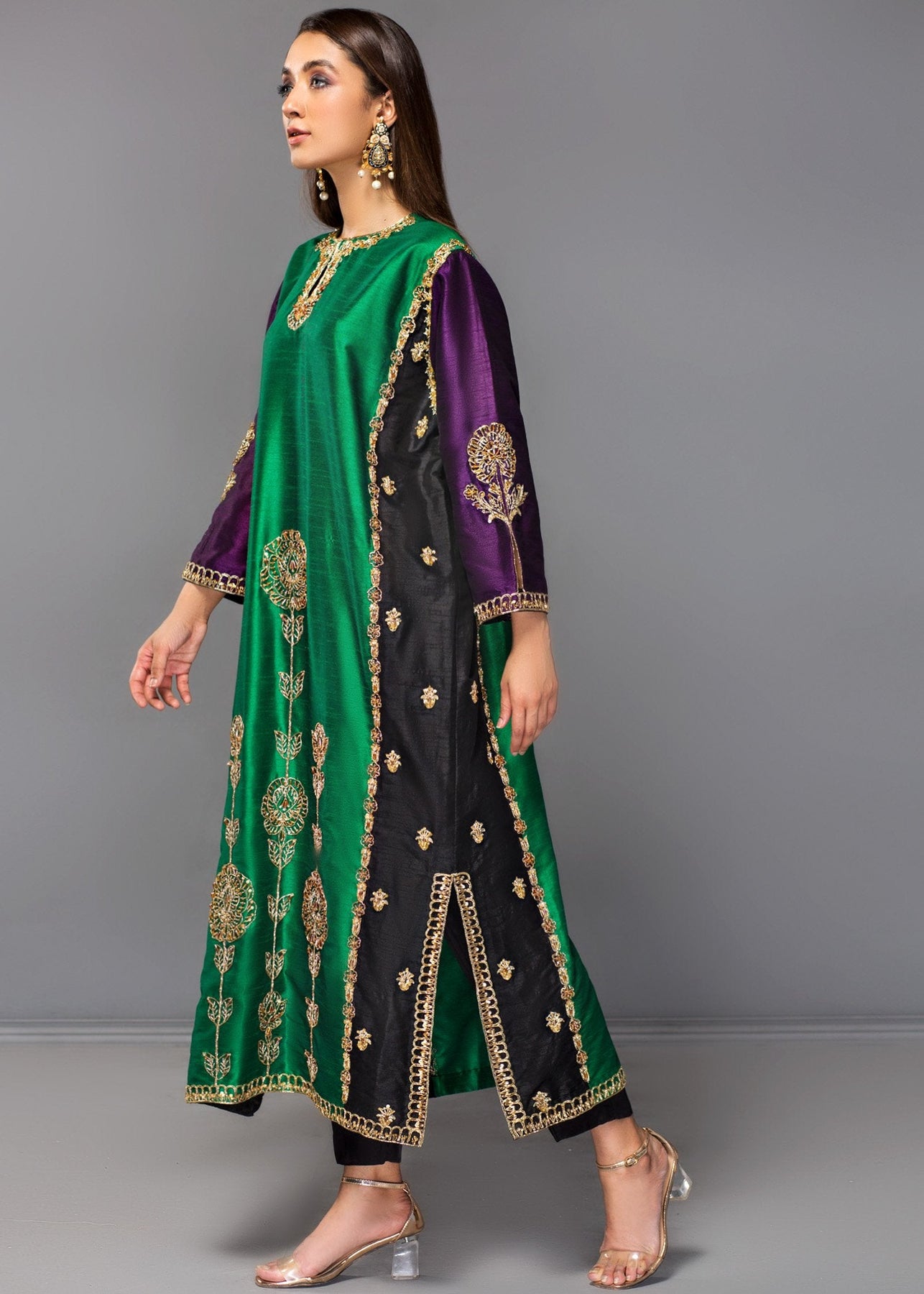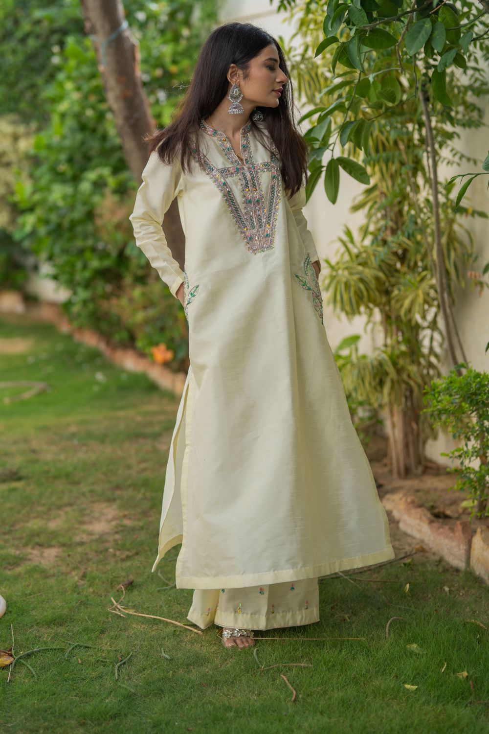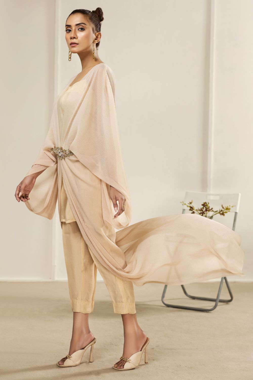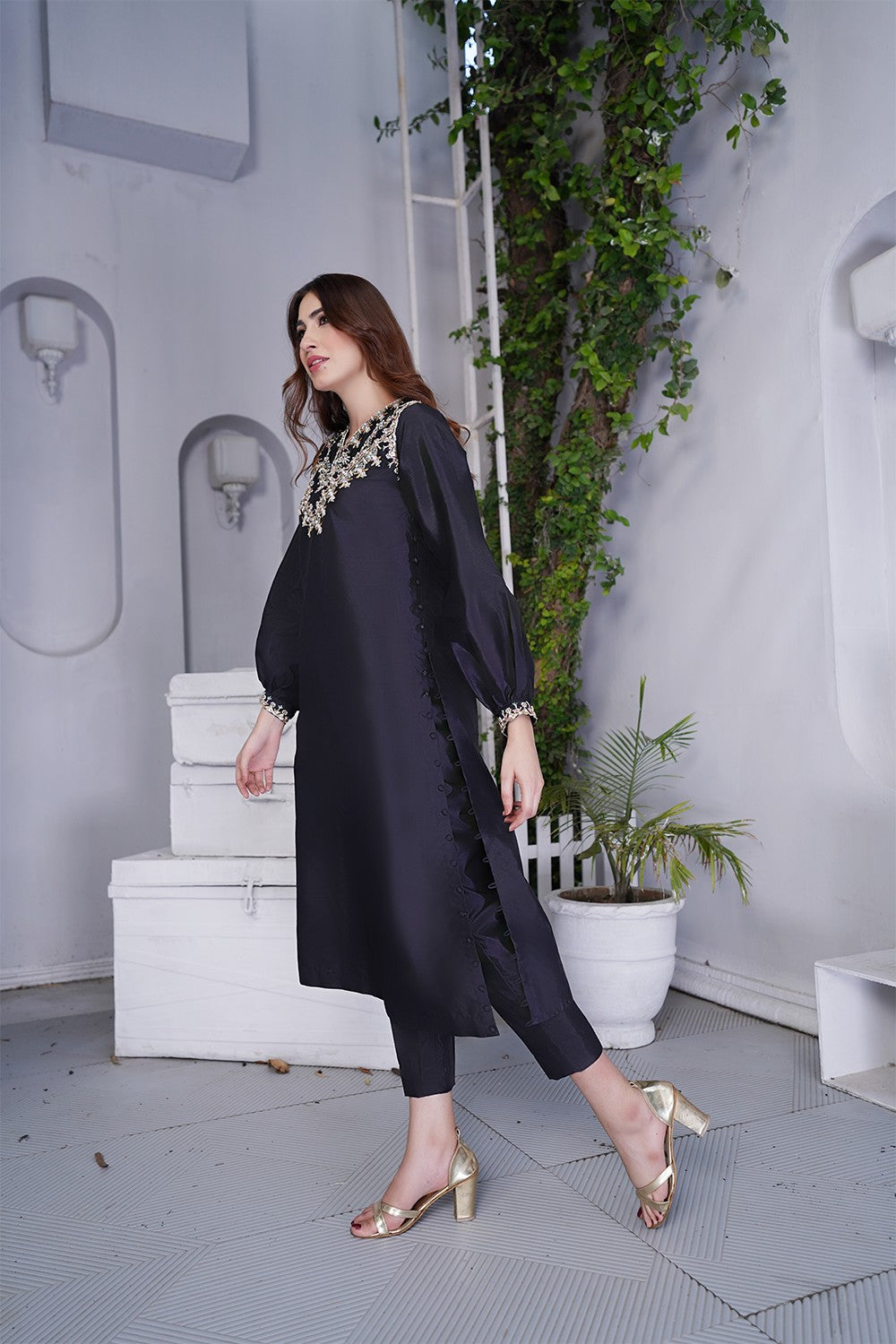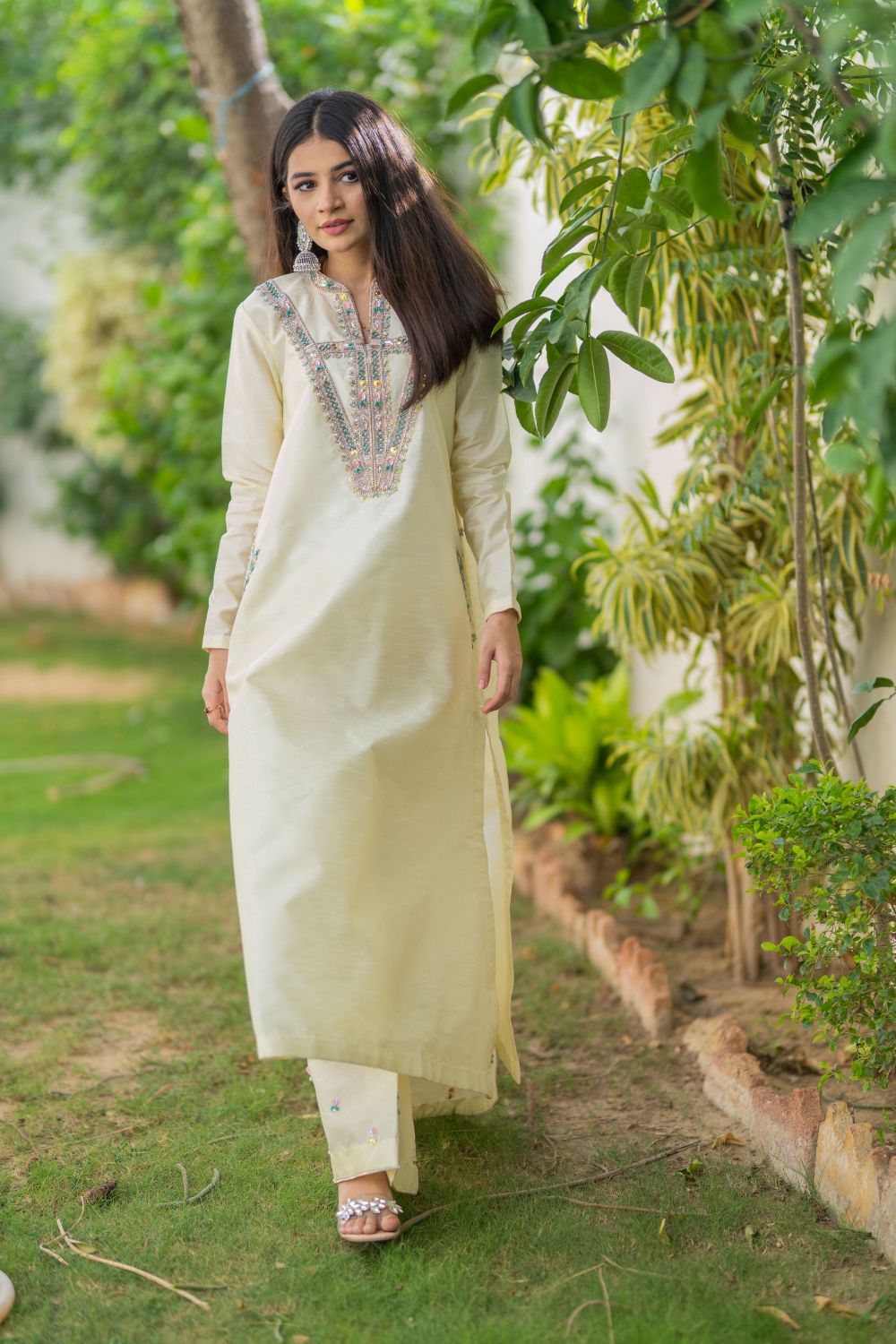 Step into elegance with our Rosé Garden Formal Ensemble, a timeless blend of pastel grace and exquisite embellishment adorned with hand-embellished floral motifs, zari work, and delicate sequin detailing.