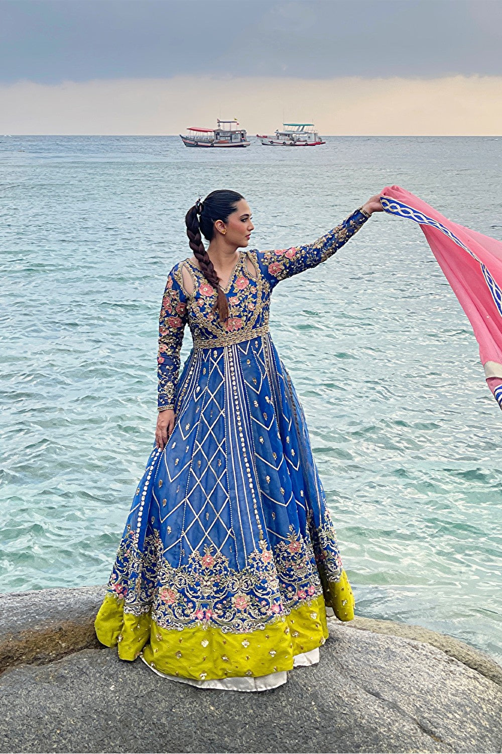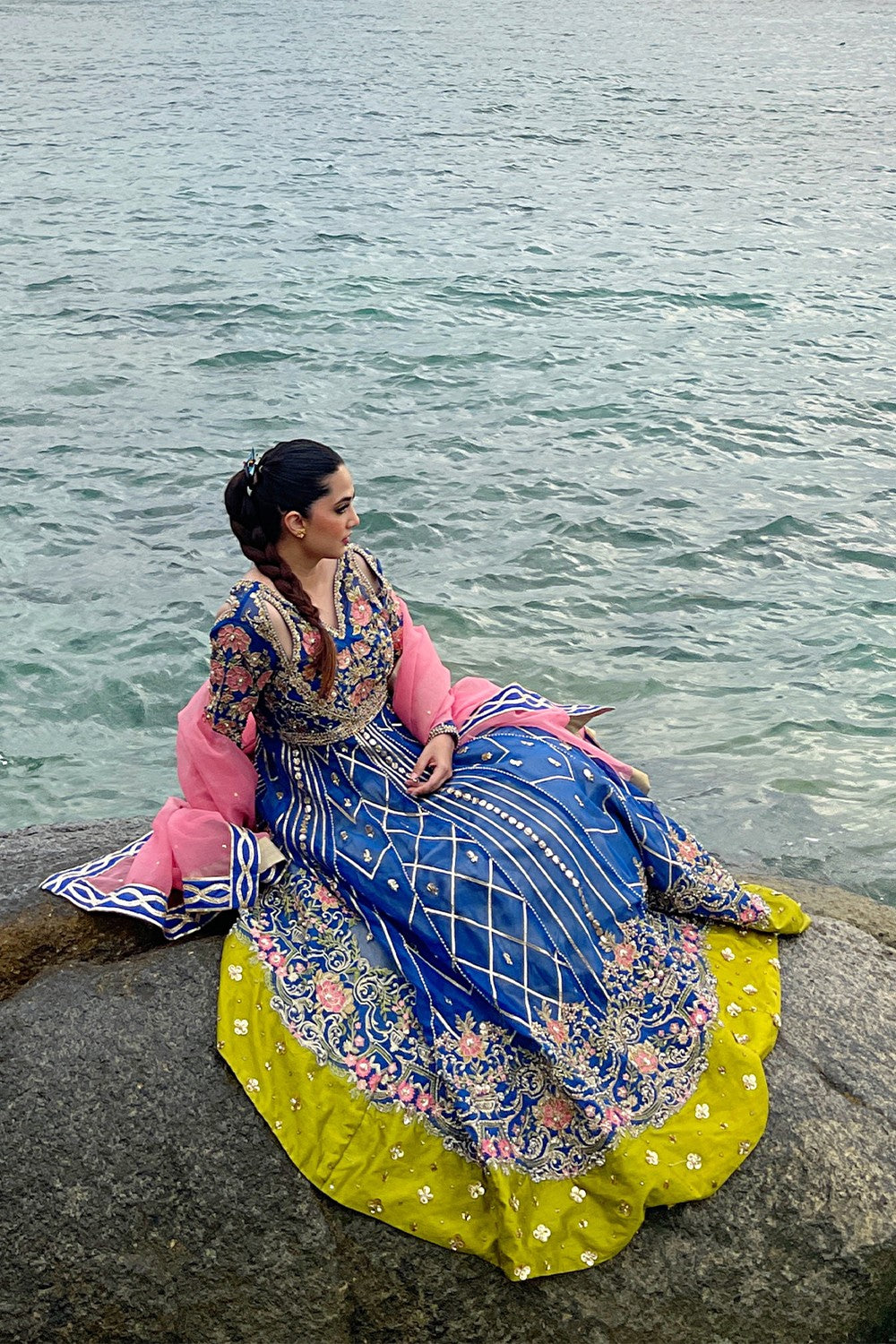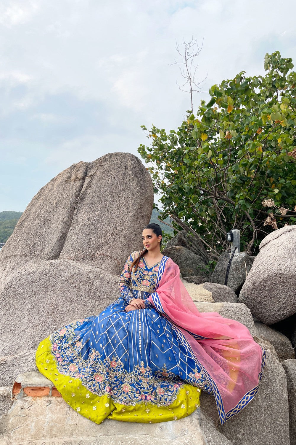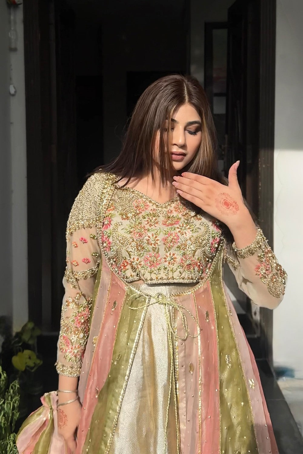 Step into elegance with our Rosé Garden Formal Ensemble, a timeless blend of pastel grace and exquisite embellishment adorned with hand-embellished floral motifs, zari work, and delicate sequin detailing.