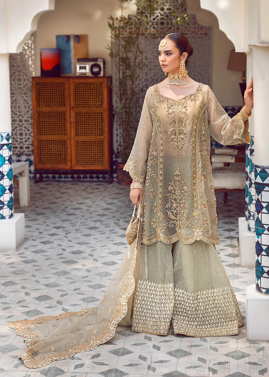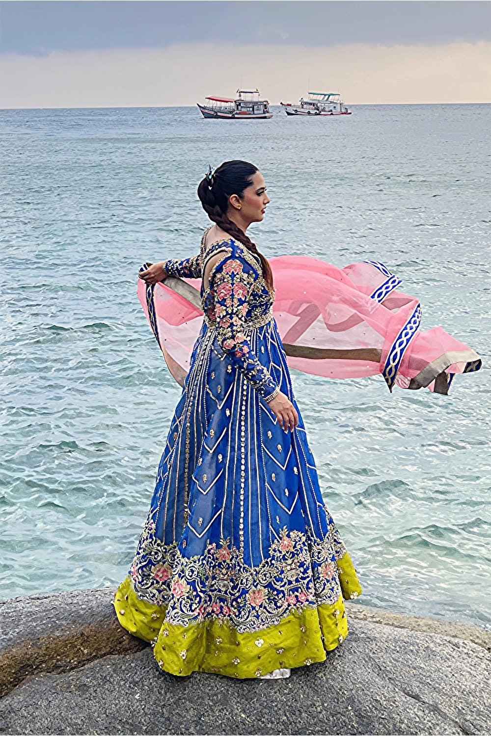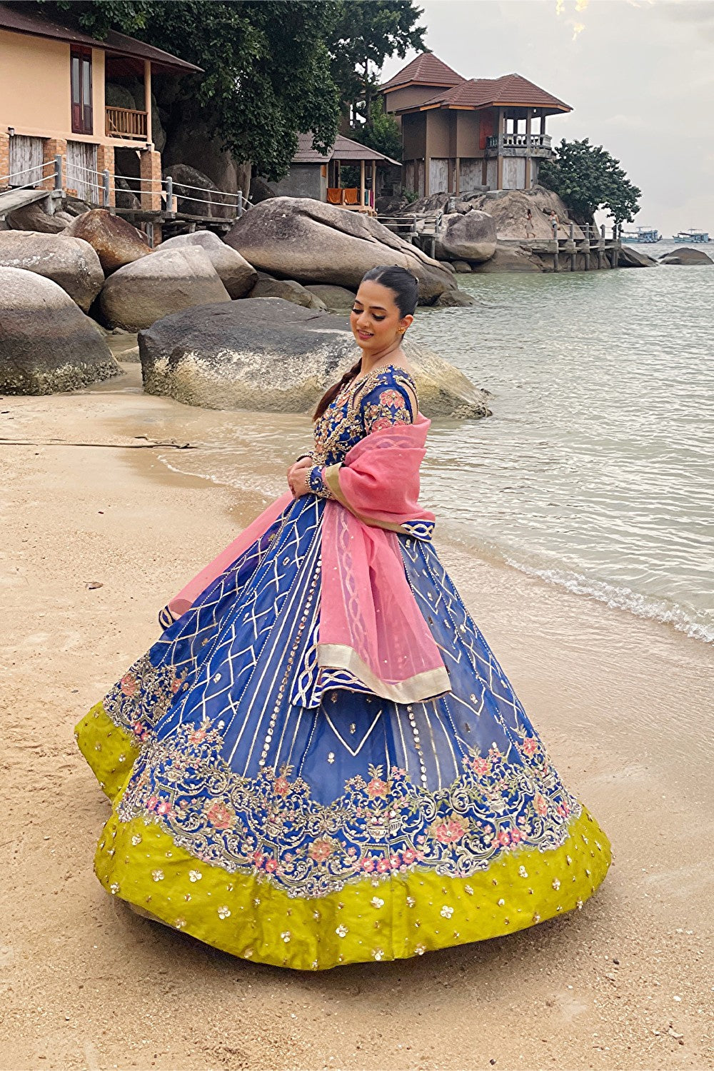 Step into elegance with our Rosé Garden Formal Ensemble, a timeless blend of pastel grace and exquisite embellishment adorned with hand-embellished floral motifs, zari work, and delicate sequin detailing.