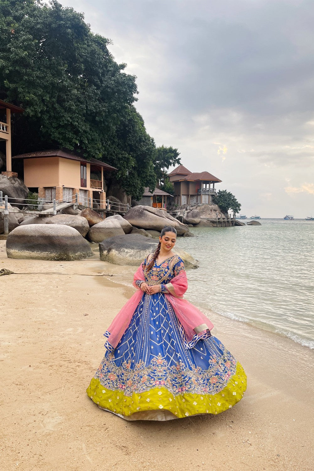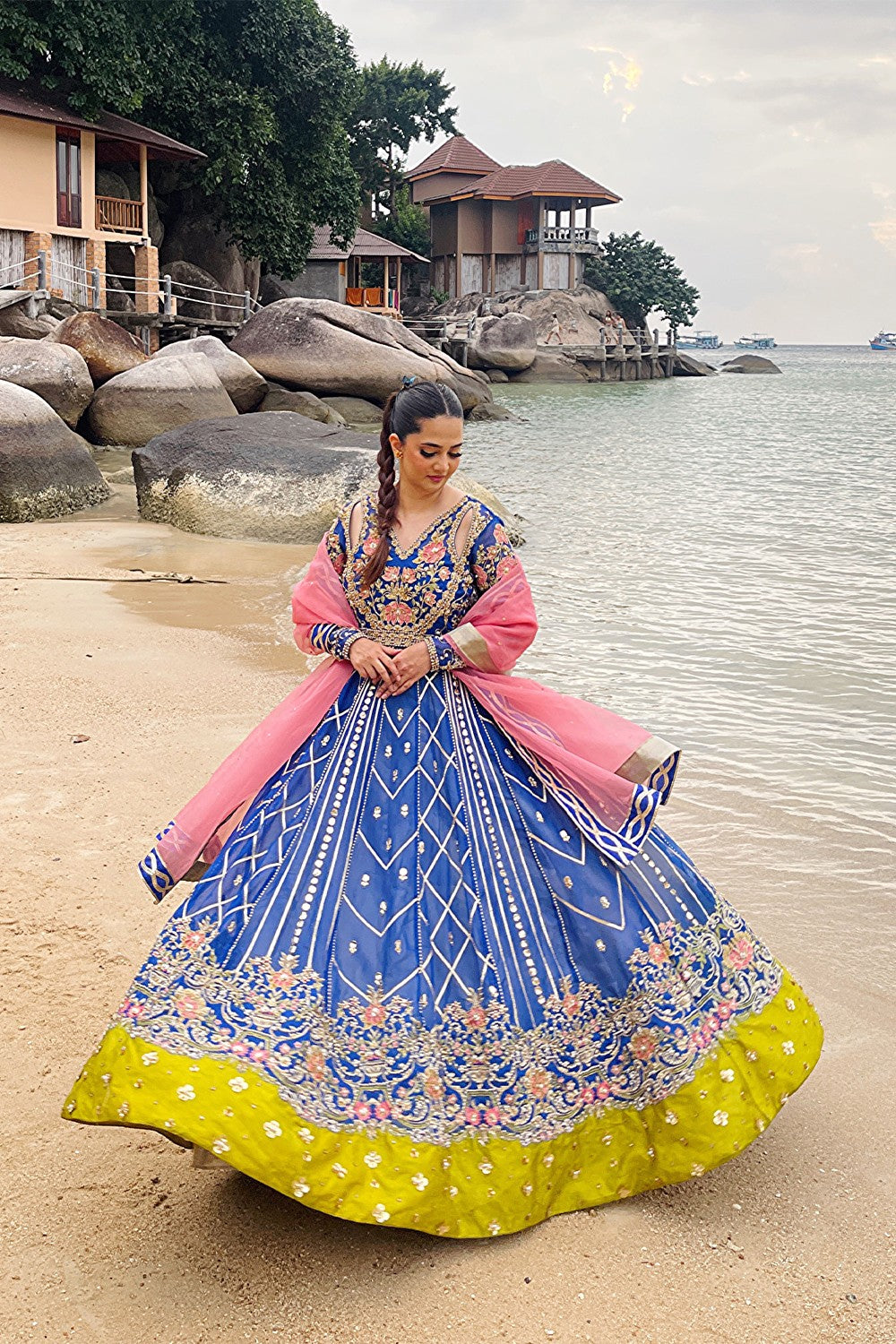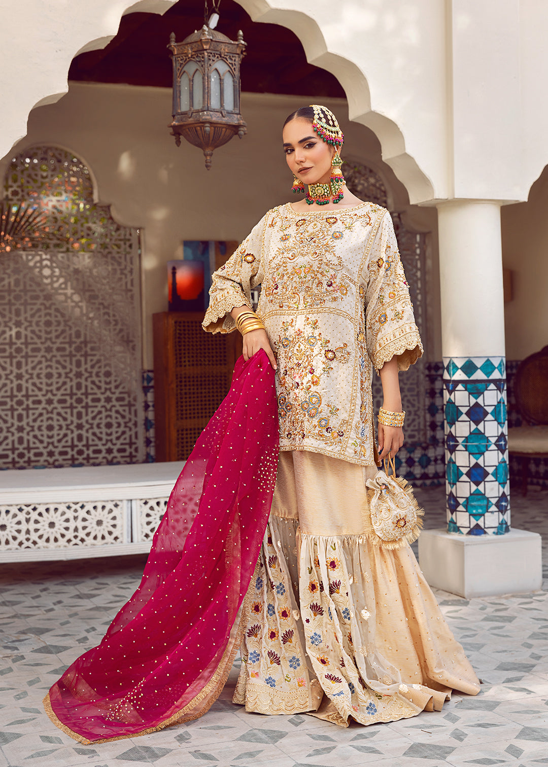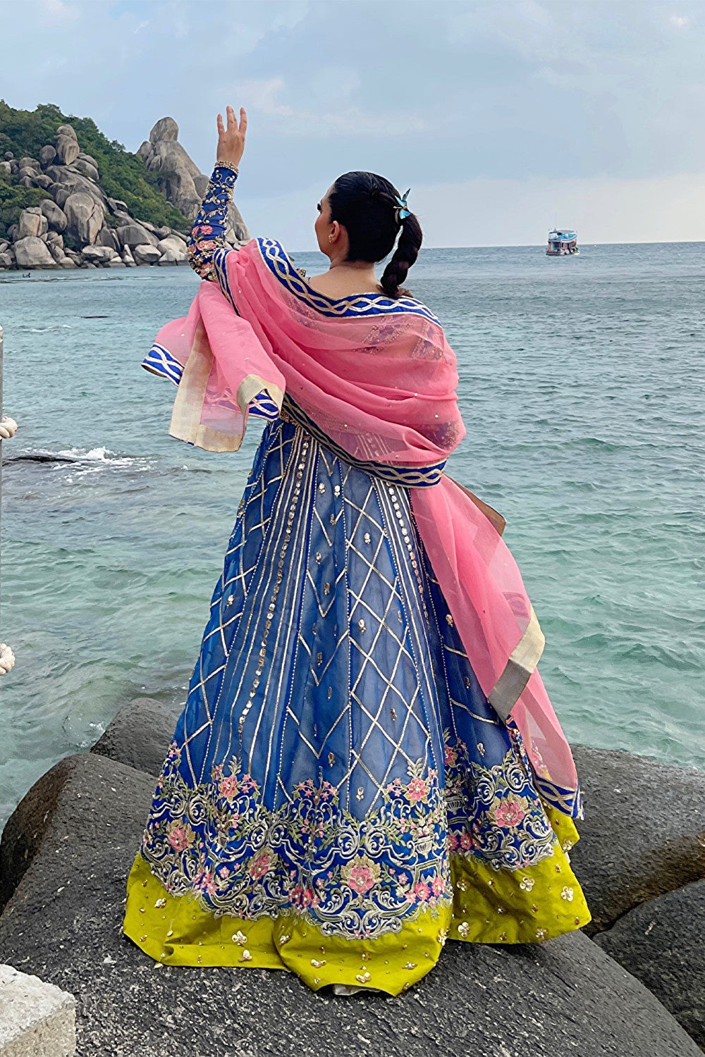 Step into elegance with our Rosé Garden Formal Ensemble, a timeless blend of pastel grace and exquisite embellishment adorned with hand-embellished floral motifs, zari work, and delicate sequin detailing.