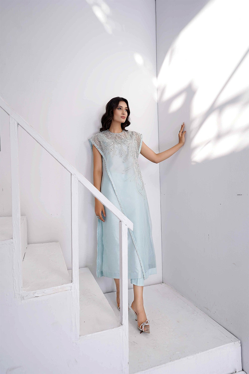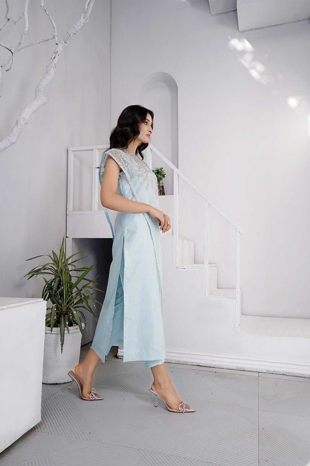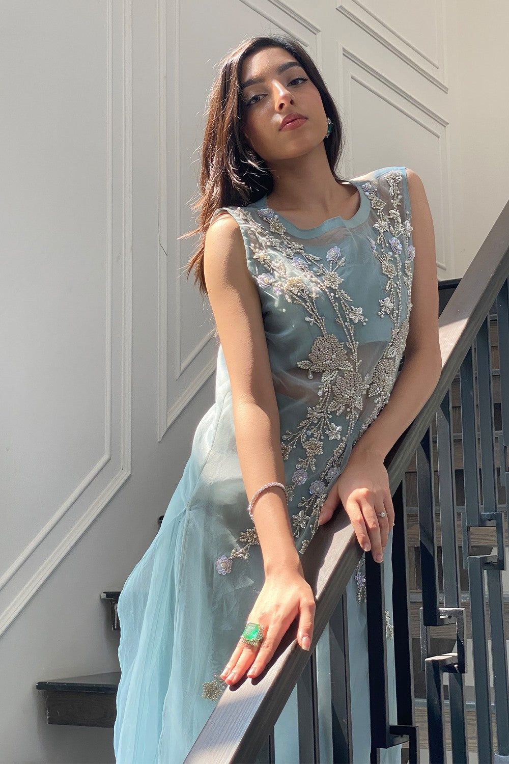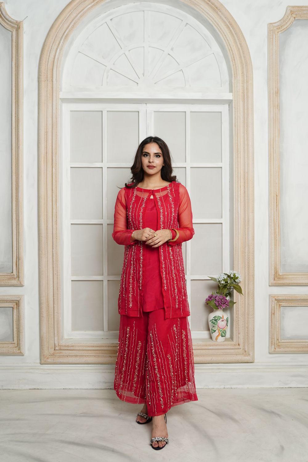 the shalwar is also detailed with gold embroidery along the cuffs, adding to the outfit's luxurious appeal