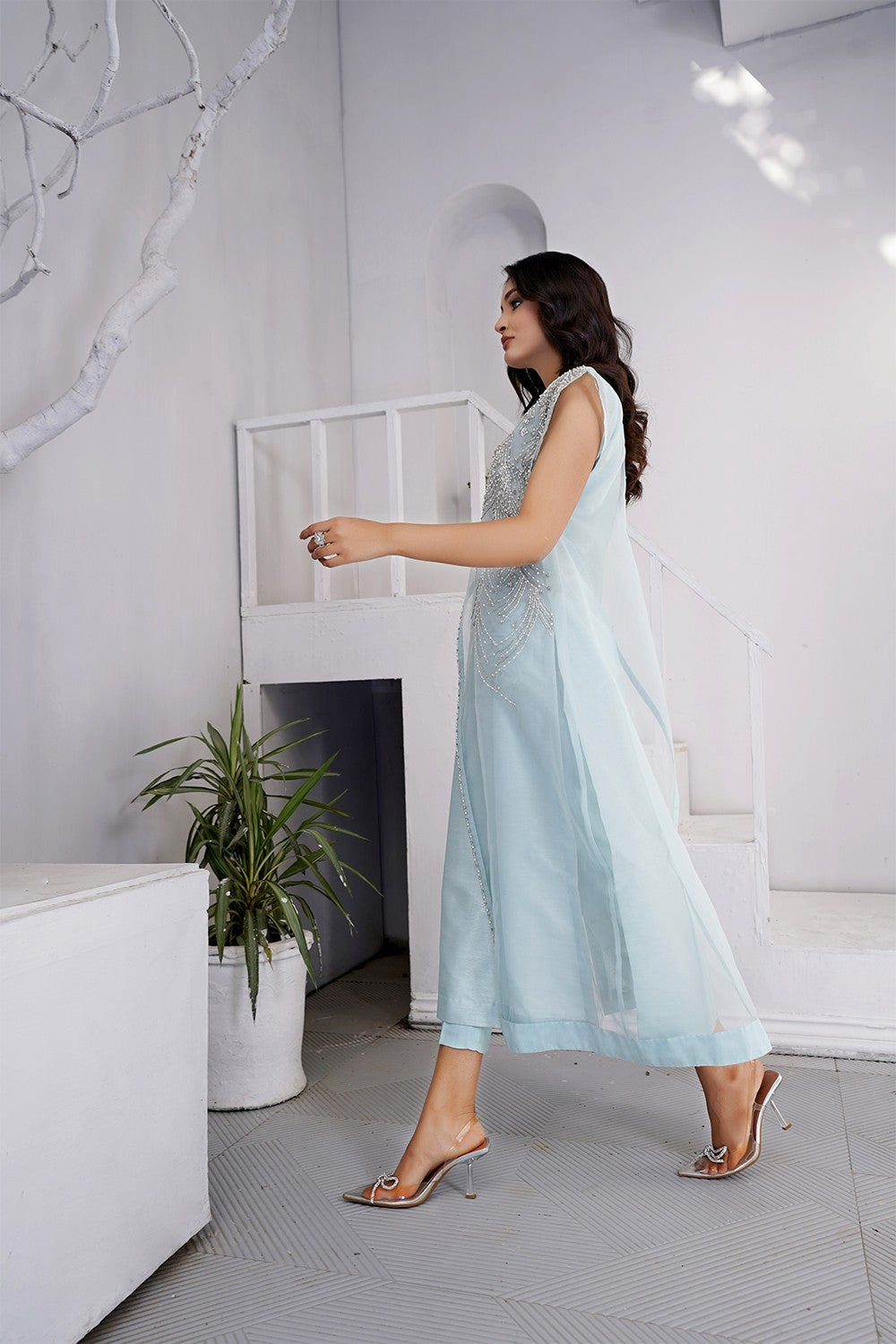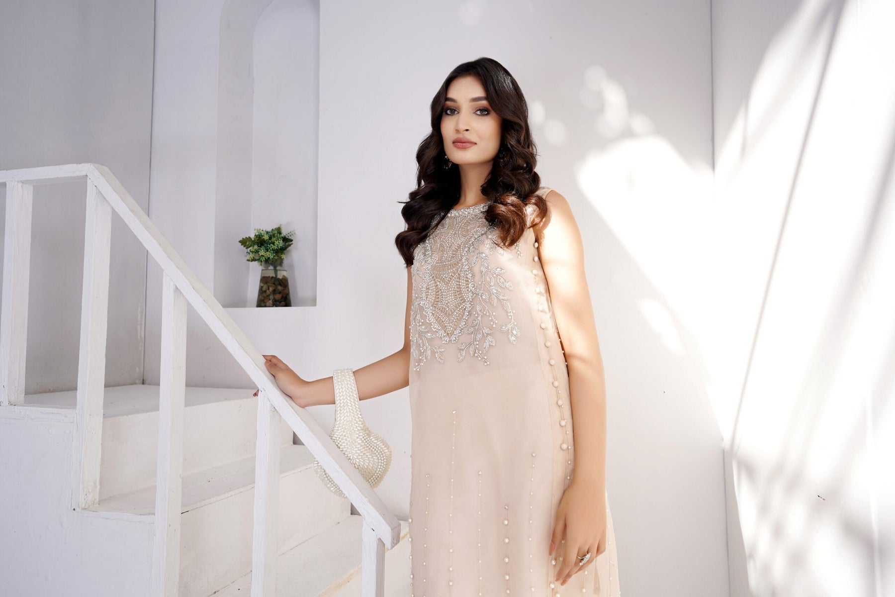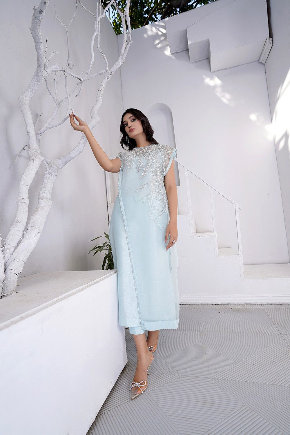 the shalwar is also detailed with gold embroidery along the cuffs, adding to the outfit's luxurious appeal