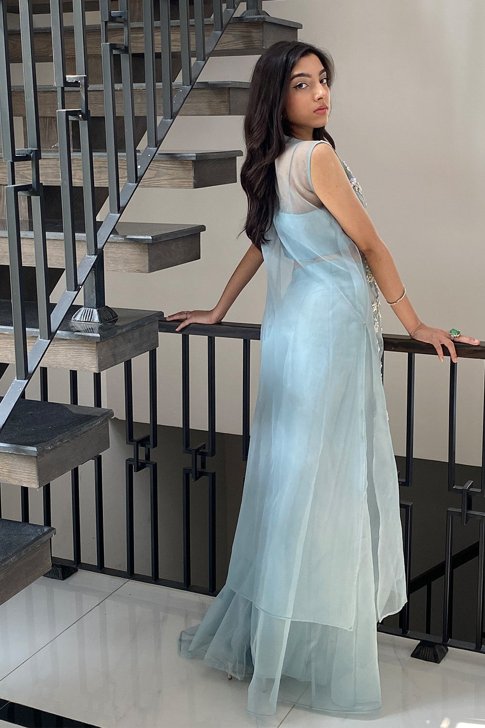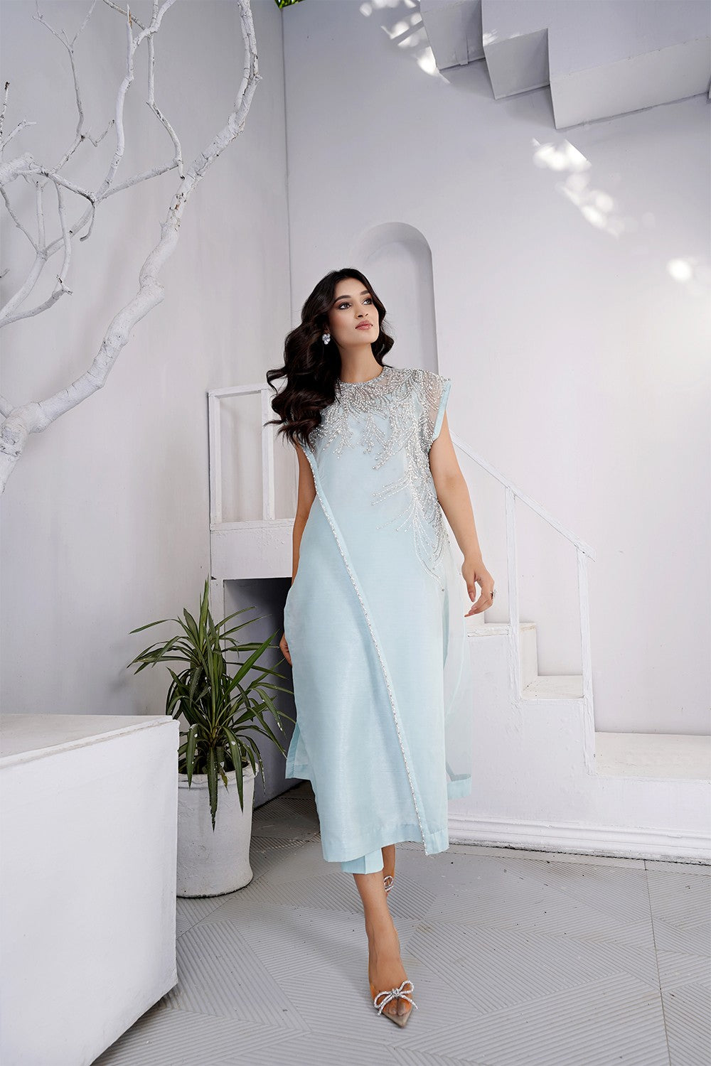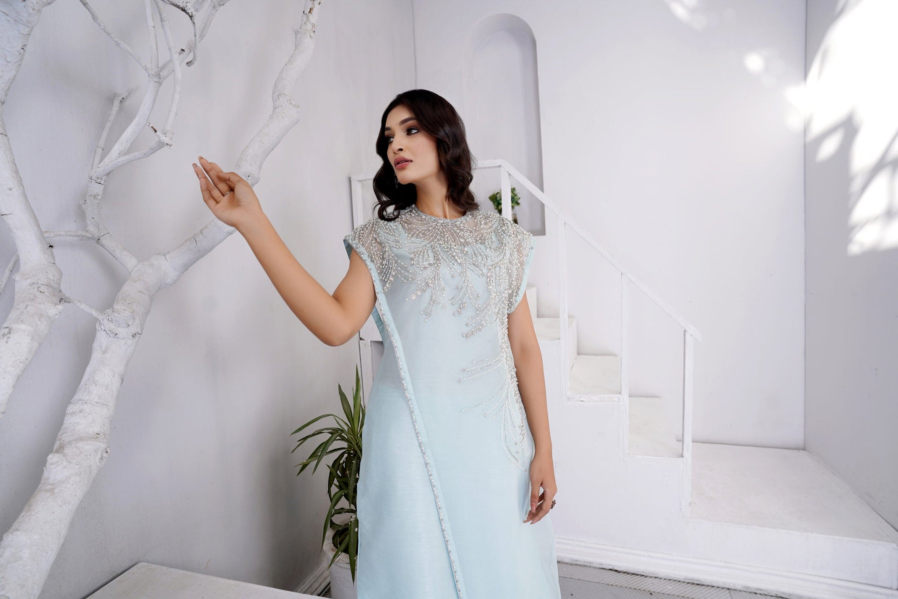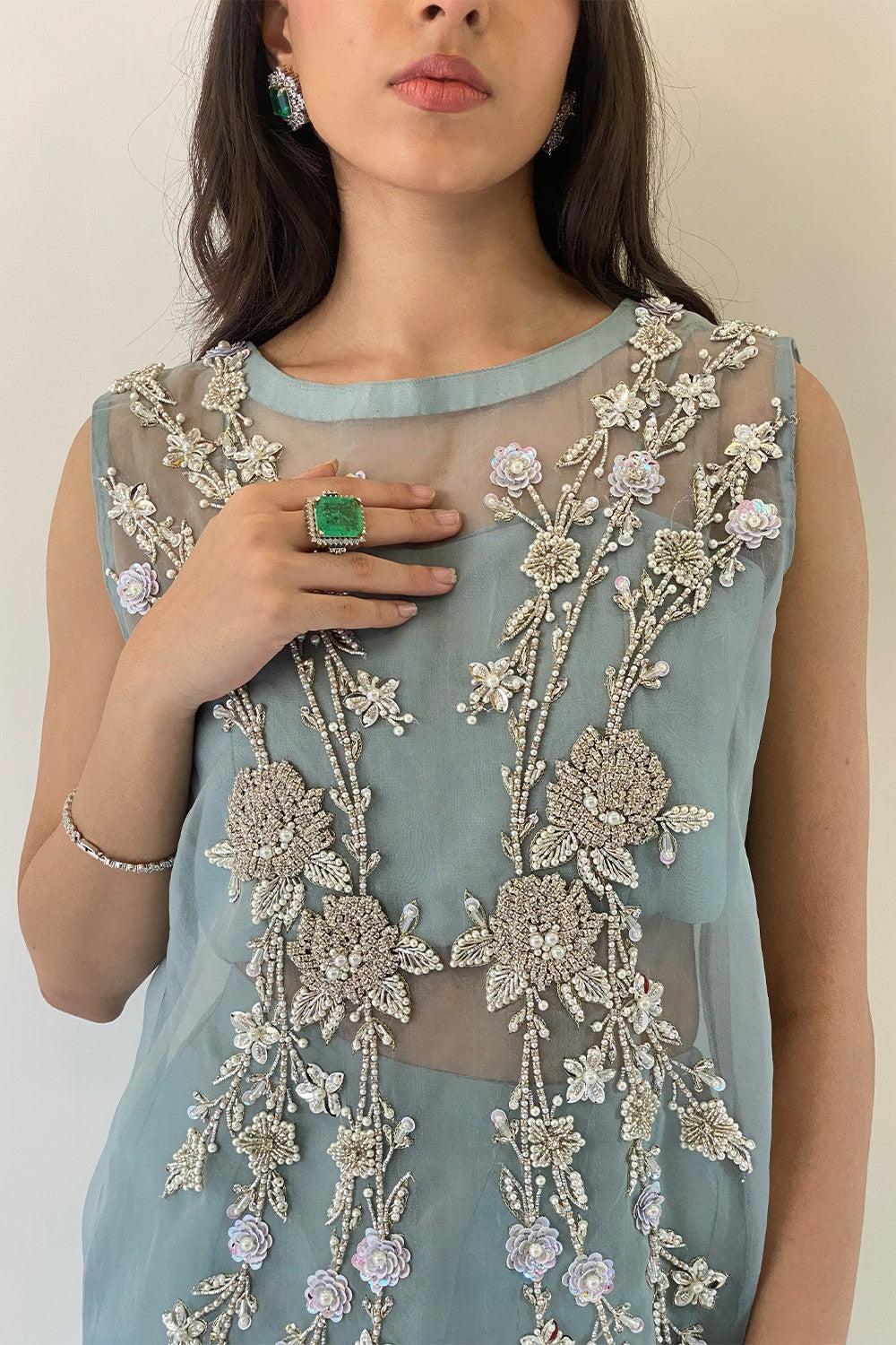 the shalwar is also detailed with gold embroidery along the cuffs, adding to the outfit's luxurious appeal